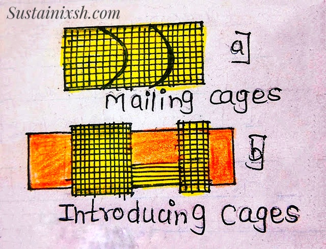 This gradual introduction prevents the worker bees from attacking her. The cage has small holes filled with candy or sugar paste, which the bees eat through over time, allowing the queen to walk out safely and become accepted by her new colony.