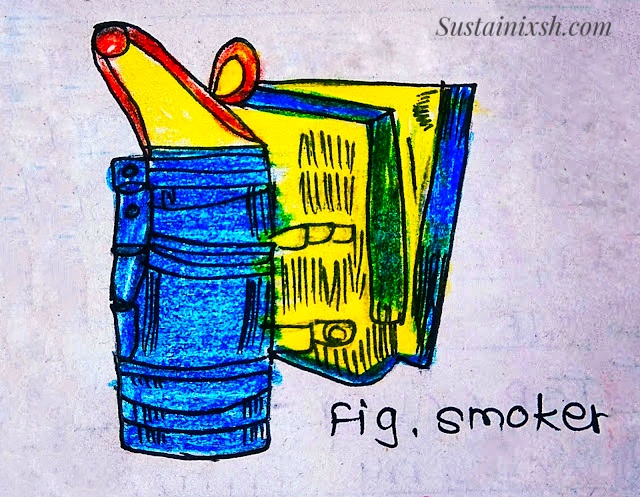 - Smoker – Beekeepers gently release smoke using a tin can with a spout and bellows to calm bees during handling. A bee smoker is one of the most essential beekeeping tools. Beekeepers use it to calm the bees before opening the hive. It consists of a metal canister that holds burning materials like dry leaves, sawdust, or coconut husks, and a bellows that gently pumps air to release cool smoke through a spout. When the smoke reaches the hive, the bees sense a natural fire warning and start consuming honey to prepare for an escape. This makes them calm and less likely to sting. The smoke also masks their alarm pheromones, helping the beekeeper inspect the hive peacefully.